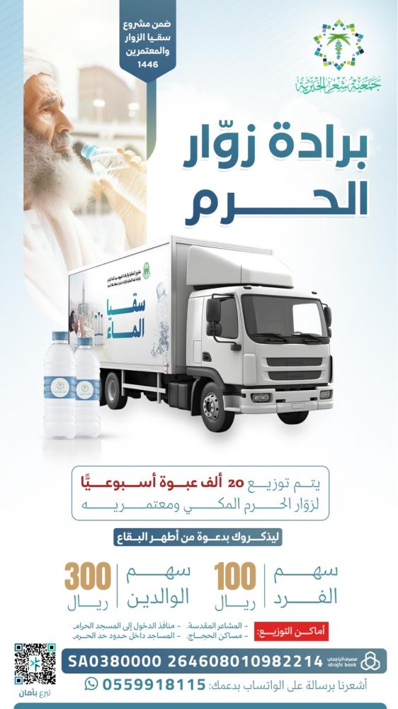 يتم توزيع 20 ألف عبوة أسبوعيا في مكة عند مداخل ومخارج ساحات الحرم المكي🕋